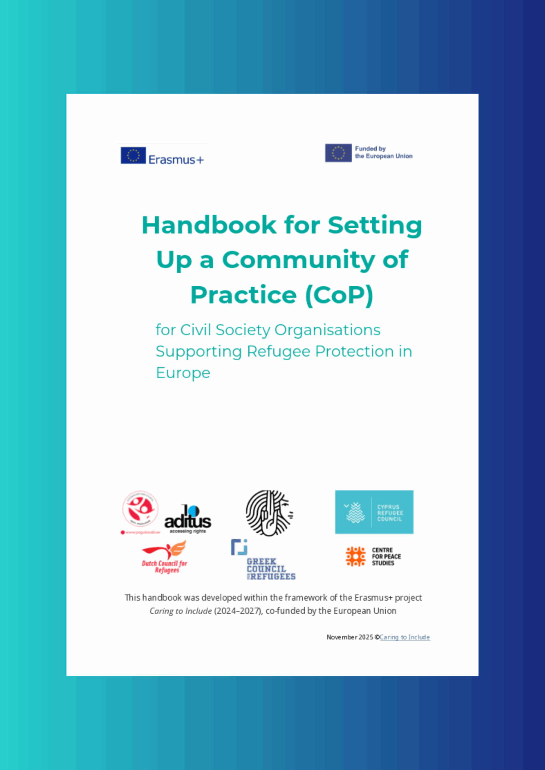 The Handbook for Setting Up a Community of Practice is now available. It was developed within the Erasmus+ project Caring to Include and gives civil society organisations supporting refugees across Europe a clear, practical roadmap, guiding them through all phases of establishing and sustaining a Community of Practice (CoP). The handbook explains how to define a shared purpose, create inclusive structures, facilitate peer learning and ensure long-term sustainability.